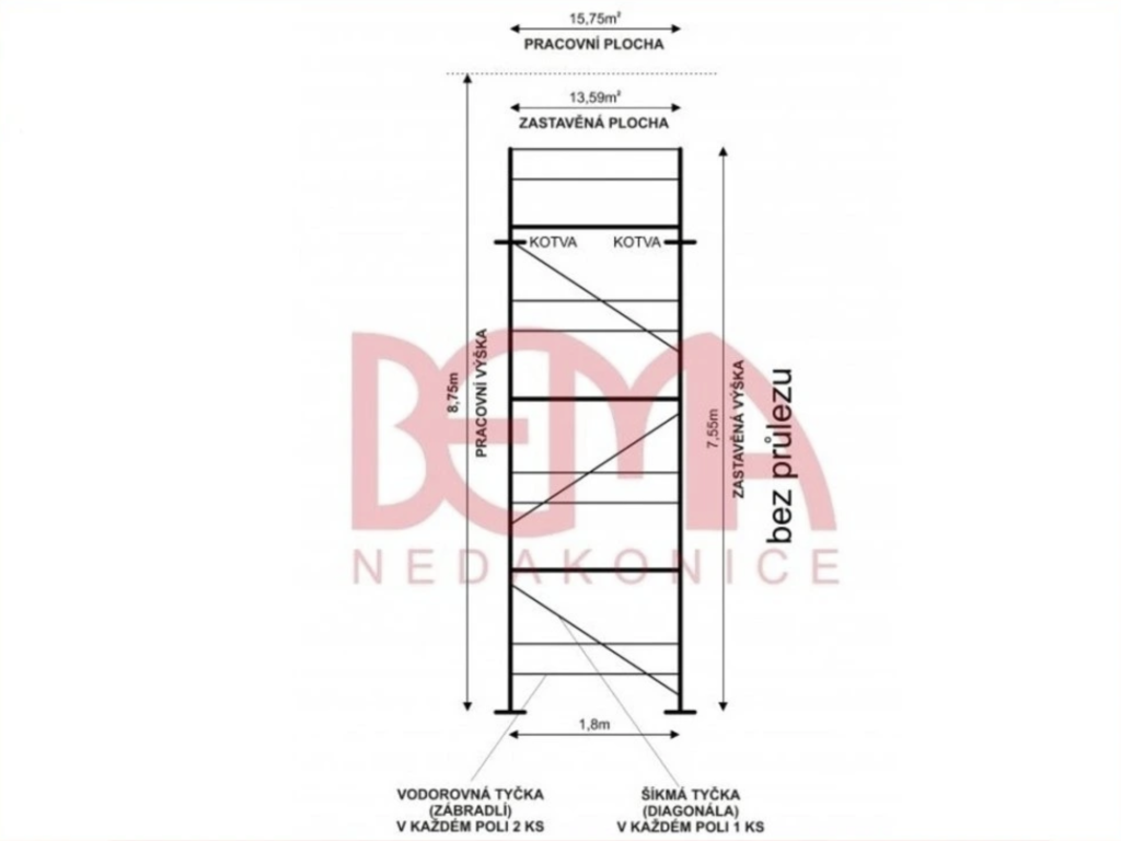 | Výška lešení:: | 7,55 metrů |