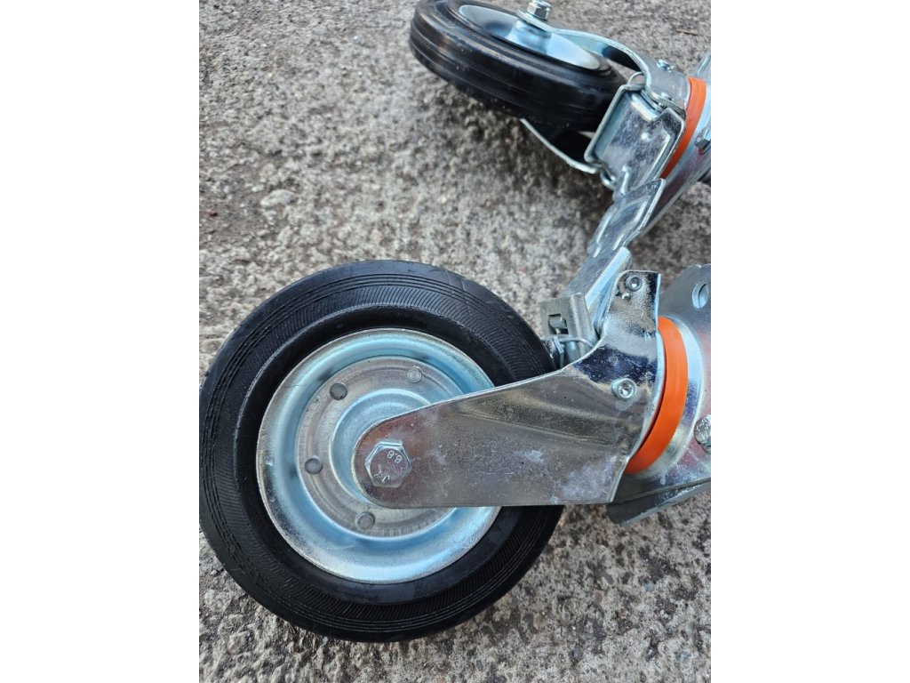 Díky nim nemusíte lešení demontovat a znovu montovat, pokud ho potřebujete přemístit. Kola lešení jsou vybavena speciální nožní brzdou. Díky tomu můžete lešení snadno uzamknout. Lešení na kolečkách má širokou škálu využití. Montáž koleček umožňuje rychlý přesun lešení. Jsou užitečné při práci venku i v interiéru. Plechový disk s černým gumovým běhounem.