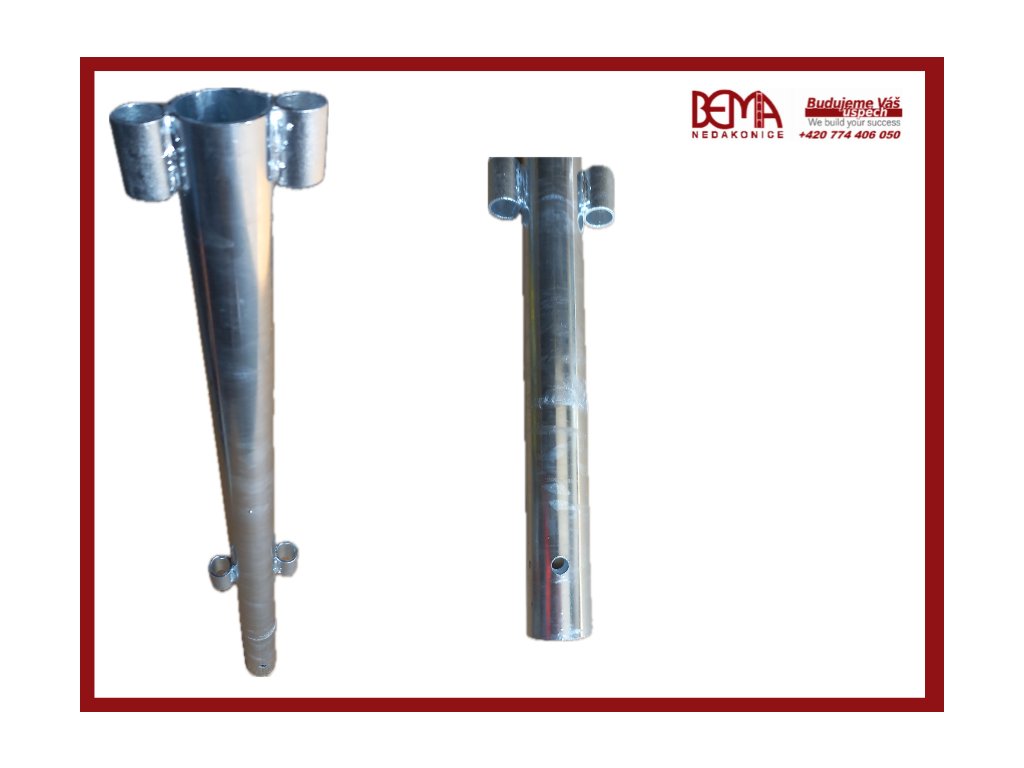 Slouží pro uchycení zábradlí ve vrchním patře lešení kde zajišťuje bezpečnost pracovníků. Výška sloupku 0,8m, při nasunutí na rám výška ochranného rábradlí 1m.