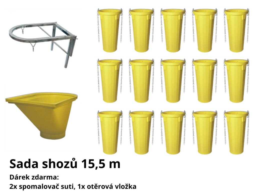 Shozy na suť jsou ideální pro malé i střední projekty, jako je rekonstrukce domu, demolice. Jsou vyrobeny z vysoce kvalitního materiálu (plast, ocel) a mají robustní konstrukci, která je odolná proti opotřebení. V nabídce máme sestavy shozů které mají délku 5,5 metru, 8,5 metru nebo 10,5 metru, 15,5 m které se dají rozšířit o jednotlivé díly. Pro jinou délku shozů volejte 774 406 050.
